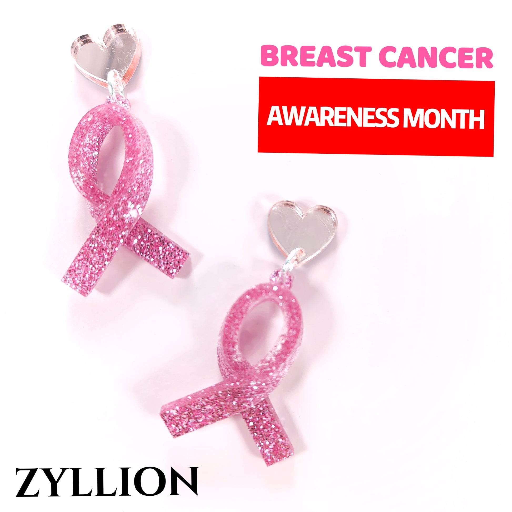 3D breast cancer ribbon Acrylic Dangle Sterling Silver Earrings