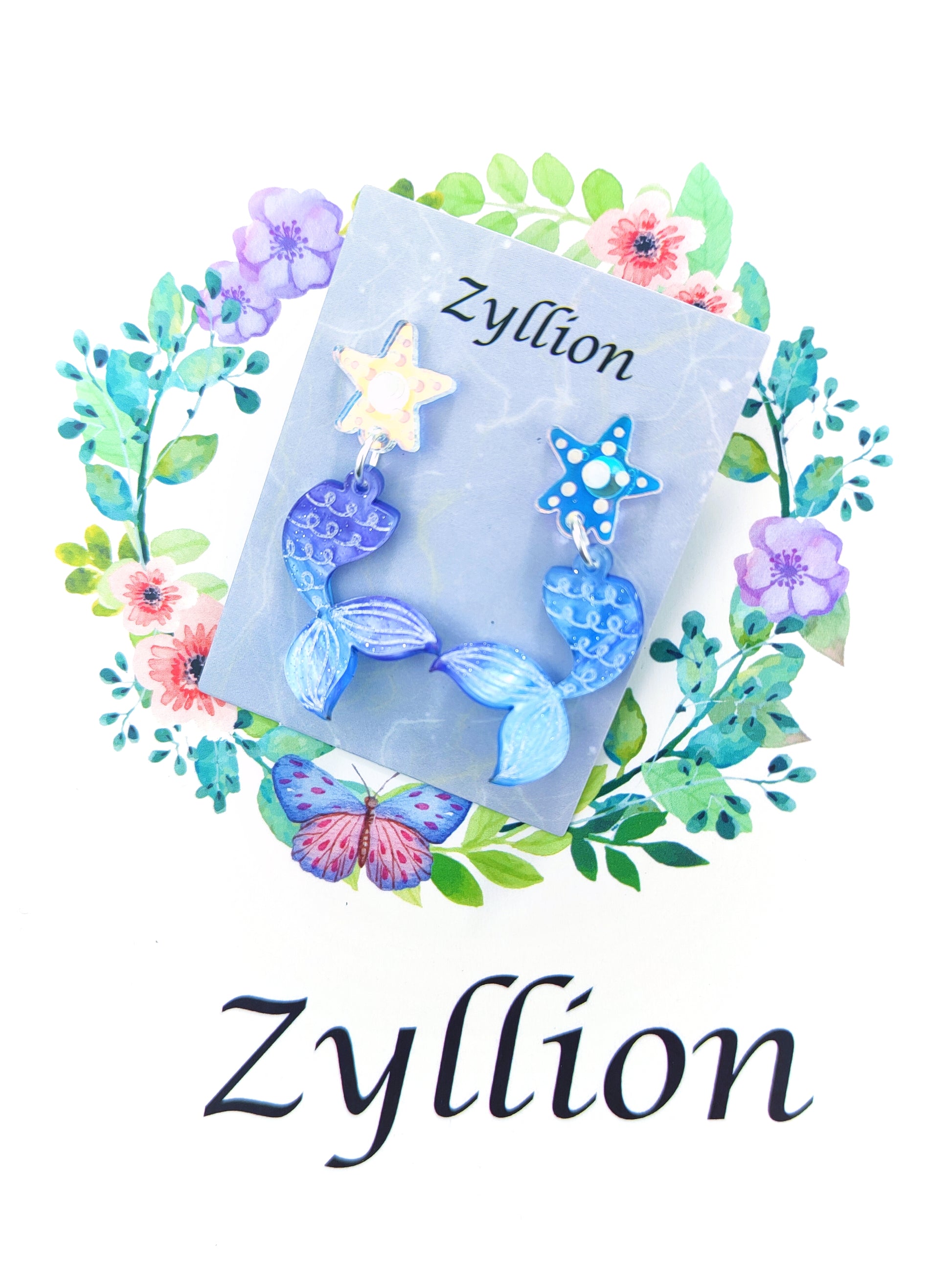 3d mermaid tail mini Drops Dangle Sterling Silver Earrings