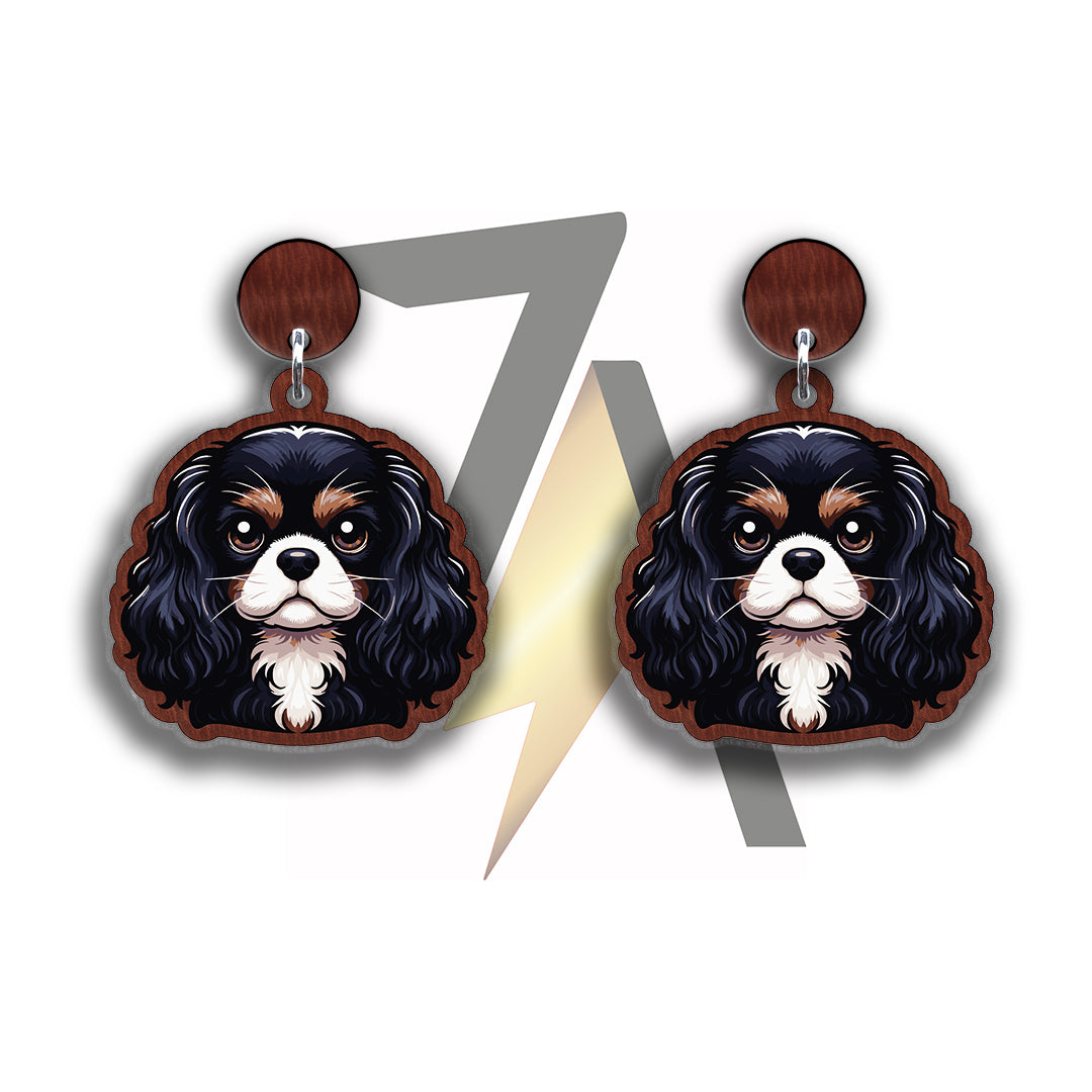 Black Cavalier King Charles Spaniel Dangle Earrings