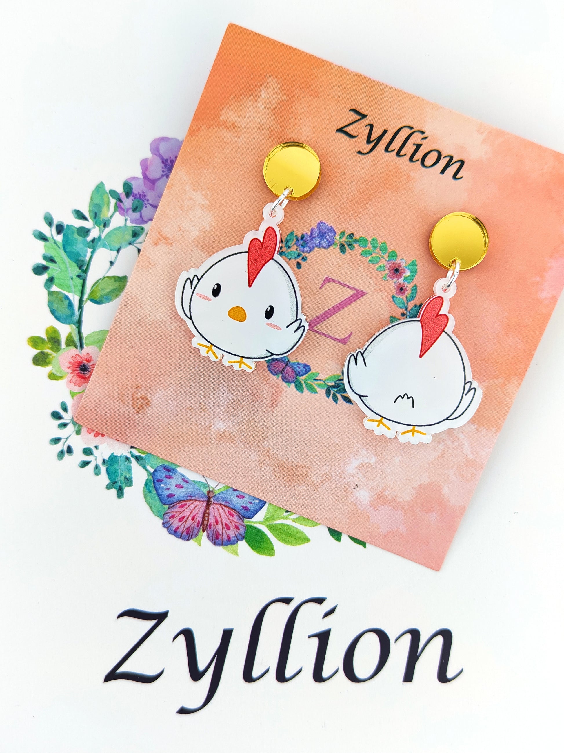 Chicken Light Weight Acrylic Dangle Sterling Silver Earrings