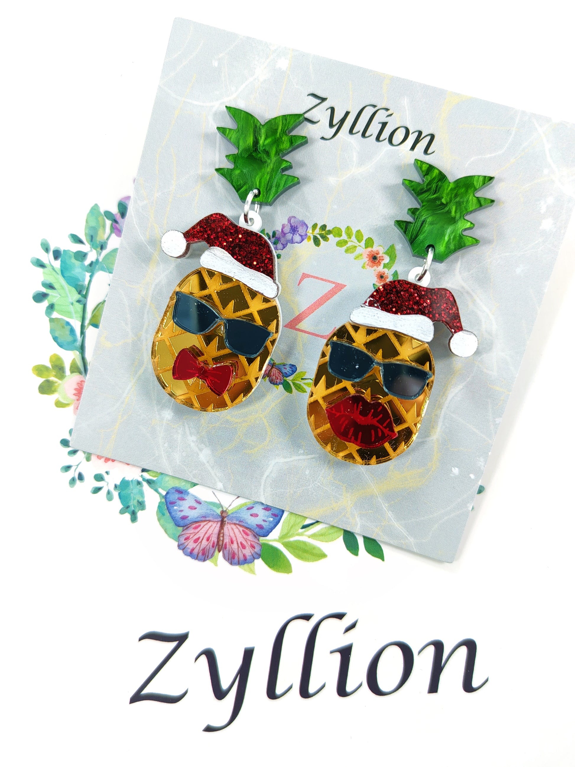 Christmas pineapple acrylic Dangle Sterling Silver Earrings