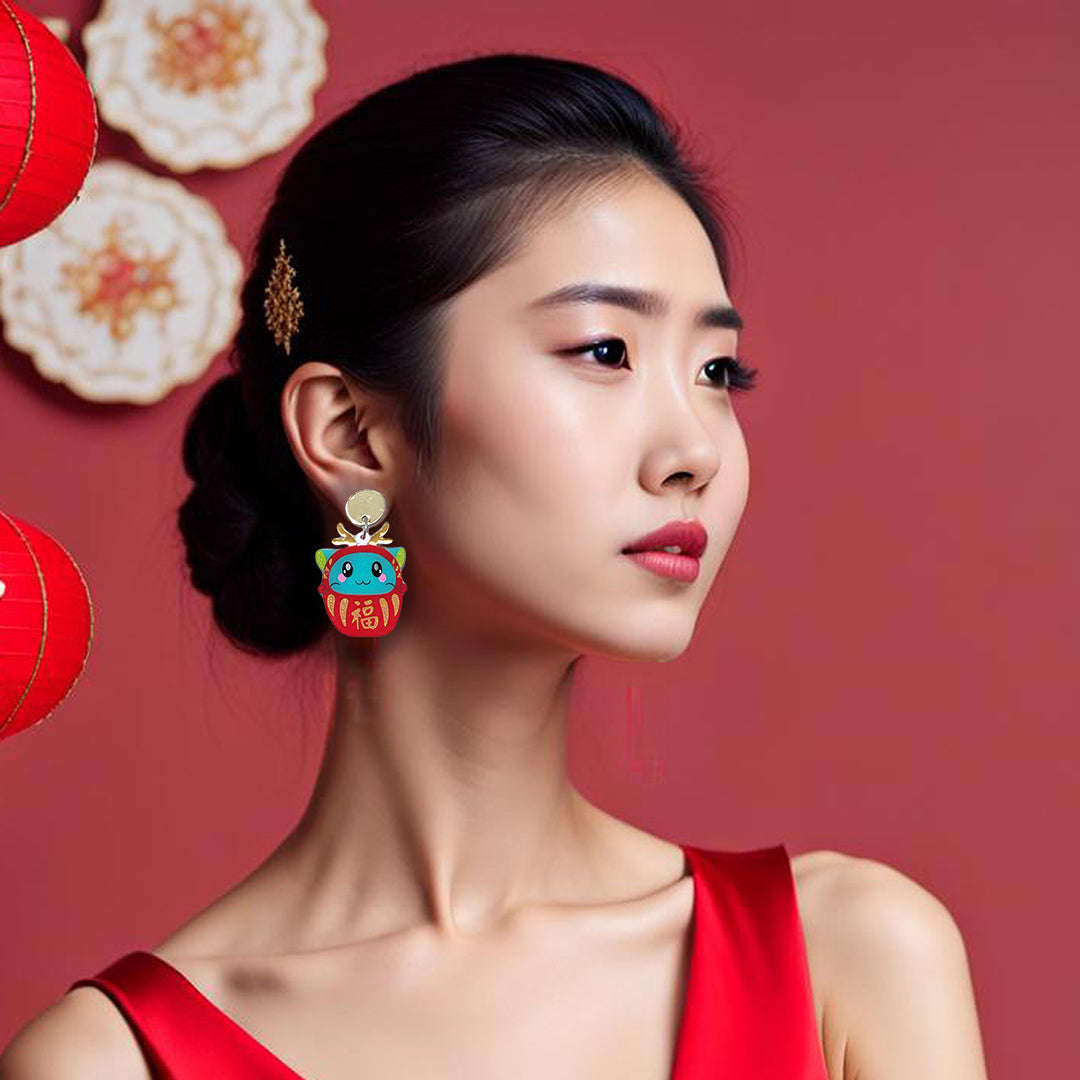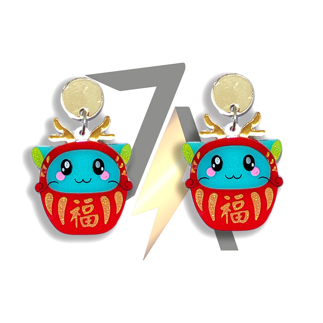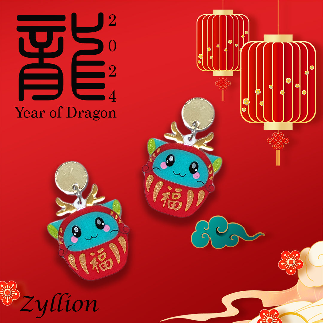CNY Year of Dragon Acrylic Dangle Sterling Silver Earrings