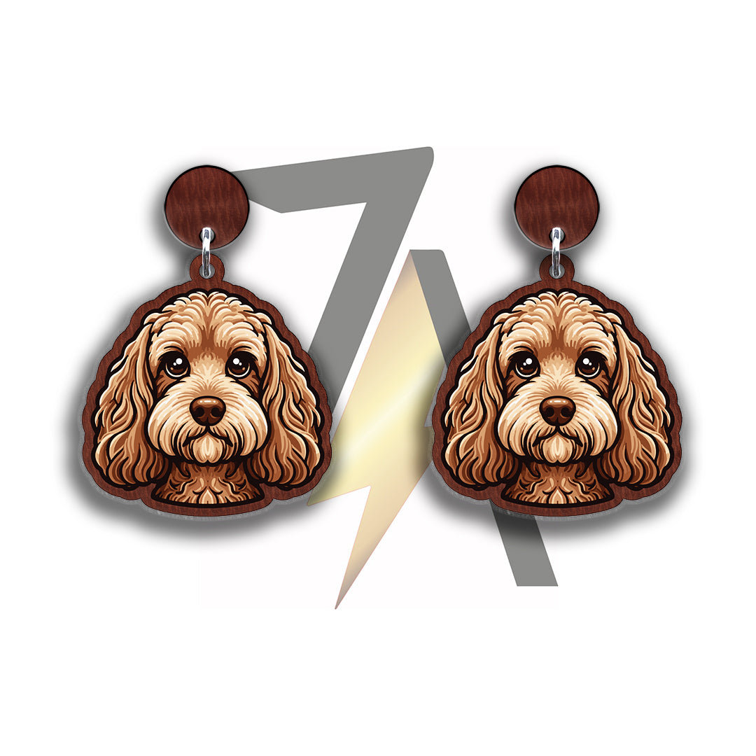 These wooden planar earrings showcase an adorable Cockapoo face design, capturing the delightful blend of Cocker Spaniel and Poodle features. With their curly coat and expressive eyes, they embody the charm and intelligence of both parent breeds. Made from lightweight, sustainable wood, these earrings offer a rustic charm while being eco-friendly. Equipped with surgical steel studs, they ensure a secure and hypoallergenic fit, making them perfect for dog lovers who appreciate a unique and stylish accessory for casual or playful outfits.