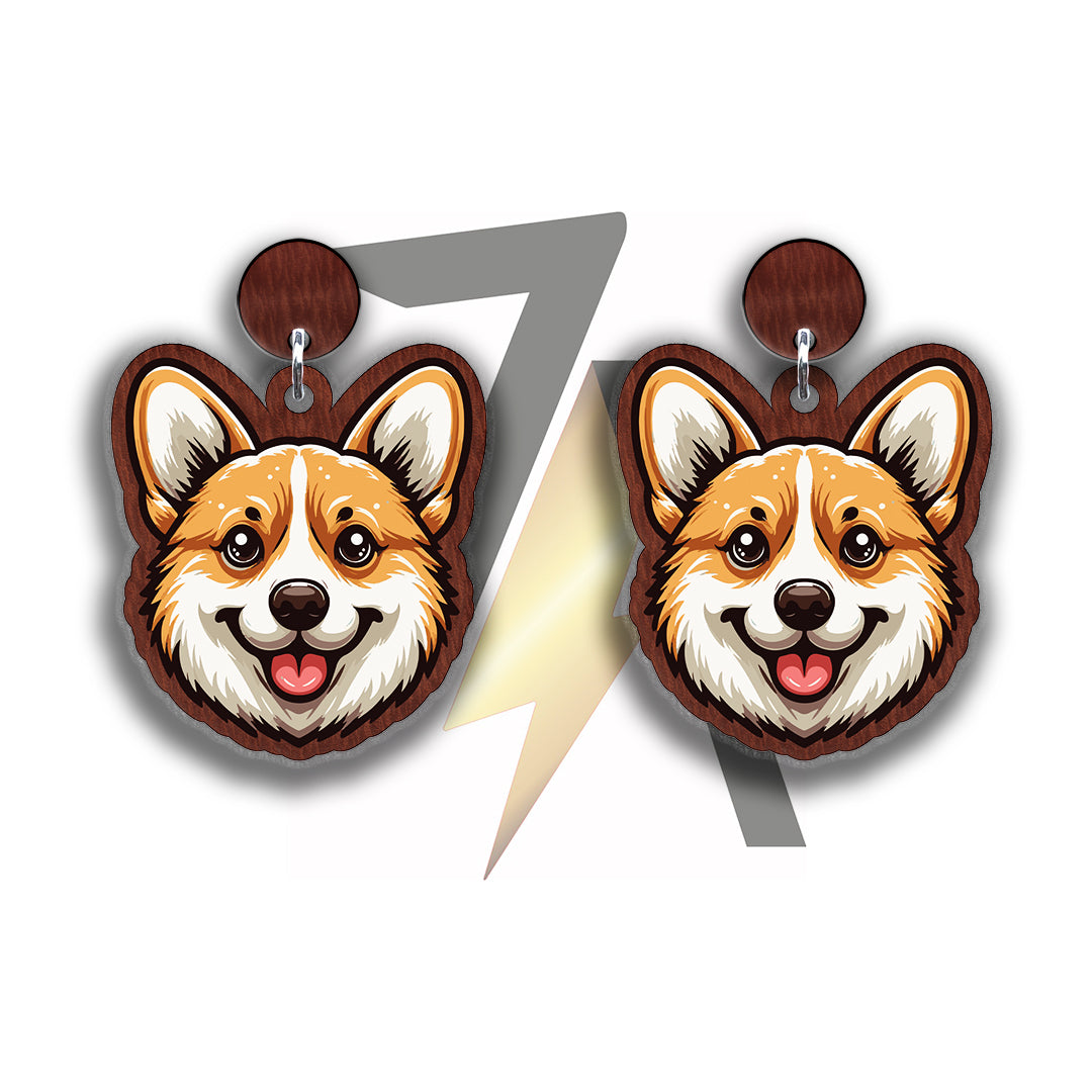 These wooden planar earrings showcase an adorable Corgi face design, capturing the breed's distinctive features such as their expressive eyes and perky ears. Corgis are known for their lively and friendly demeanor, making them beloved companions. Made from lightweight, sustainable wood, these earrings offer a rustic charm while being eco-friendly. Equipped with surgical steel studs, they ensure a secure and hypoallergenic fit, perfect for dog lovers who appreciate a unique and stylish accessory for casual or playful outfits.