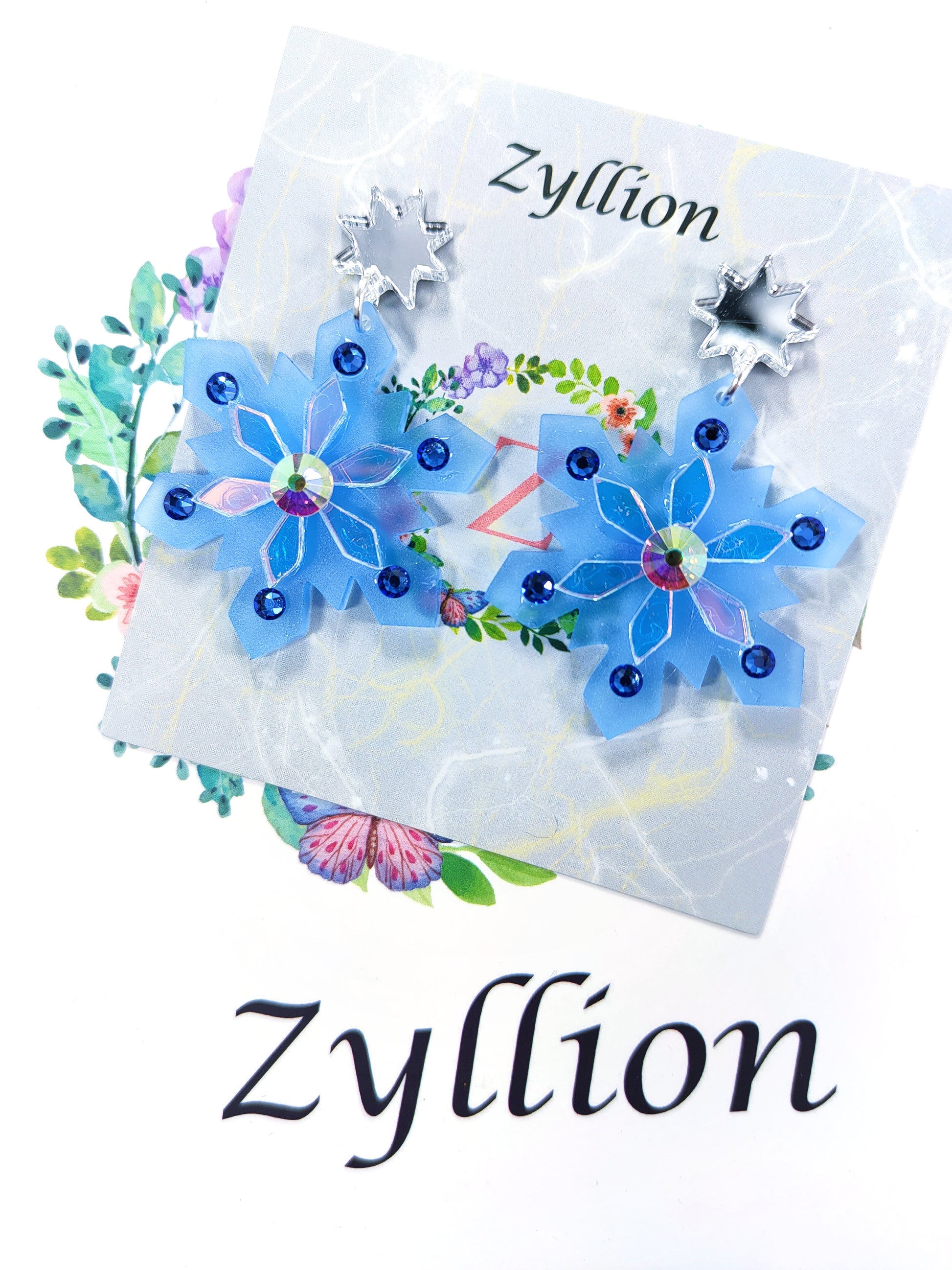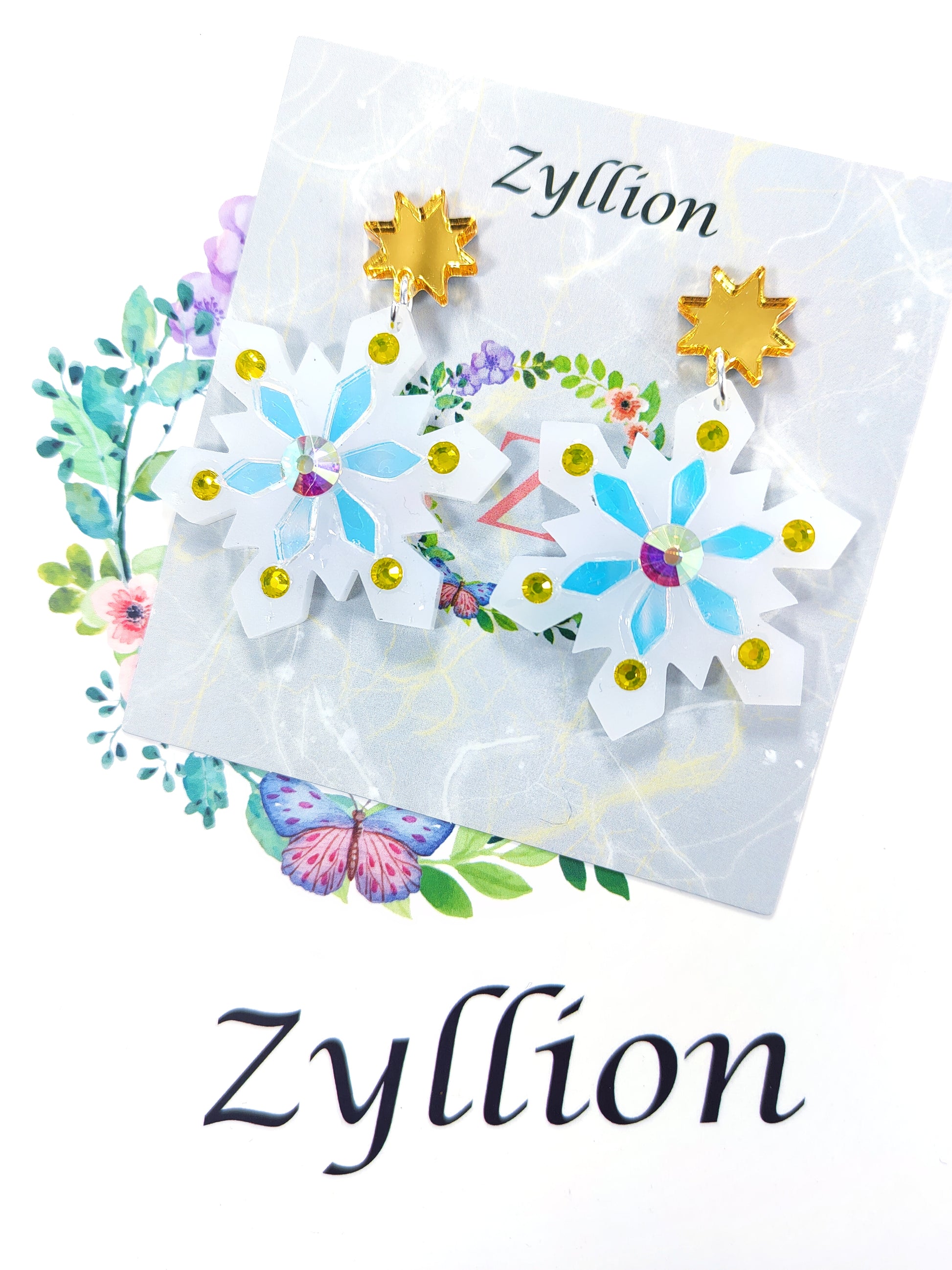 Crystal clear snowflake Dangle Sterling Silver Earrings