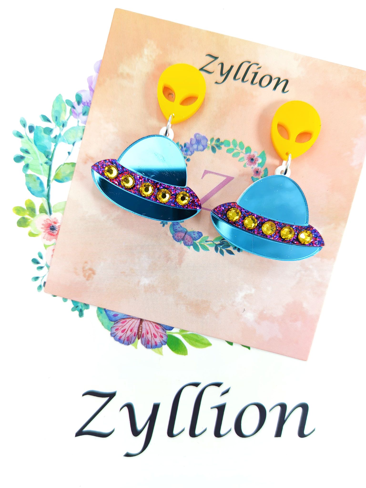 Crystal UFO Acrylic Dangle Sterling Silver Earrings