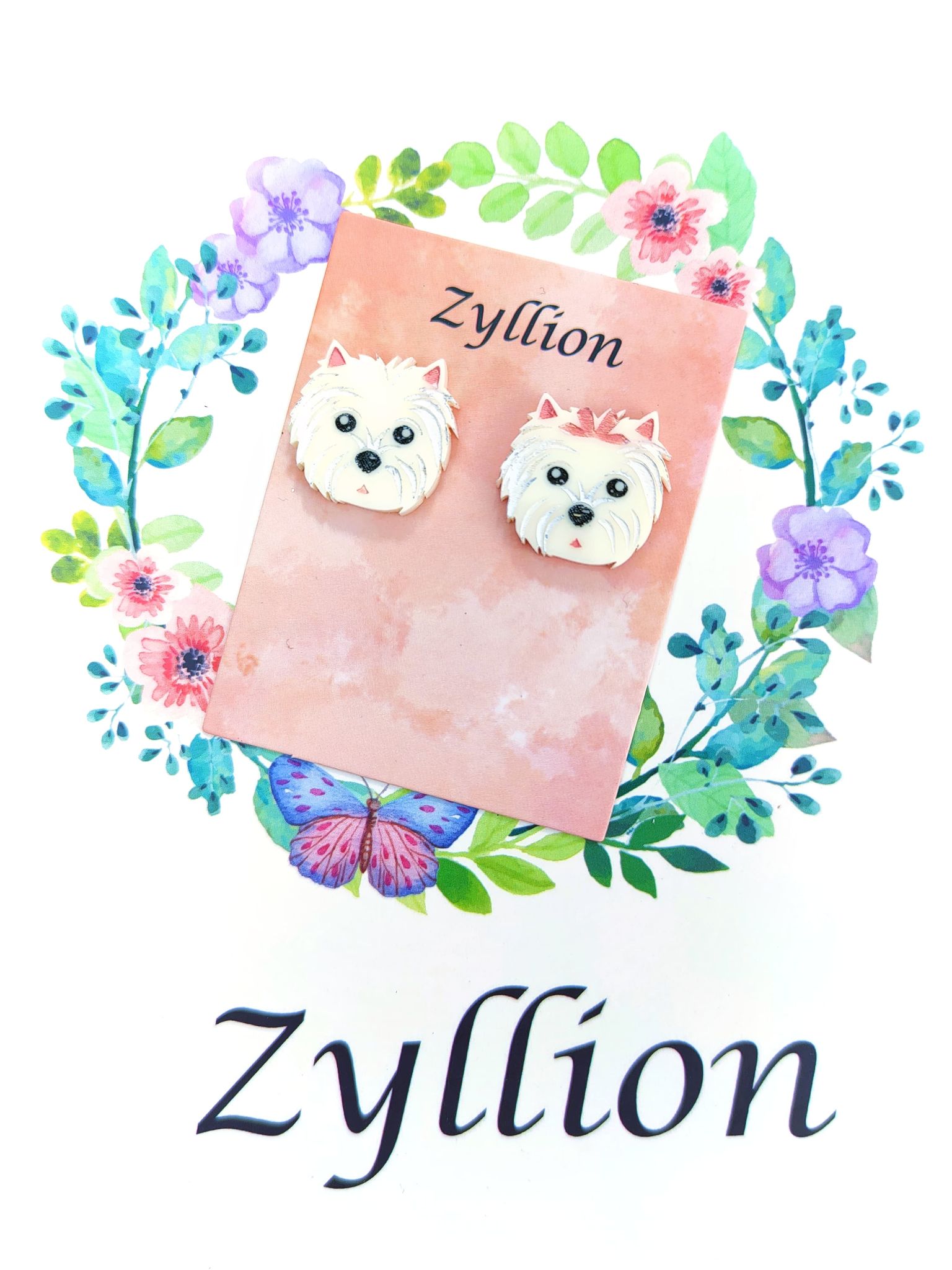 Maltese Dog Studs Sterling Silver Earrings