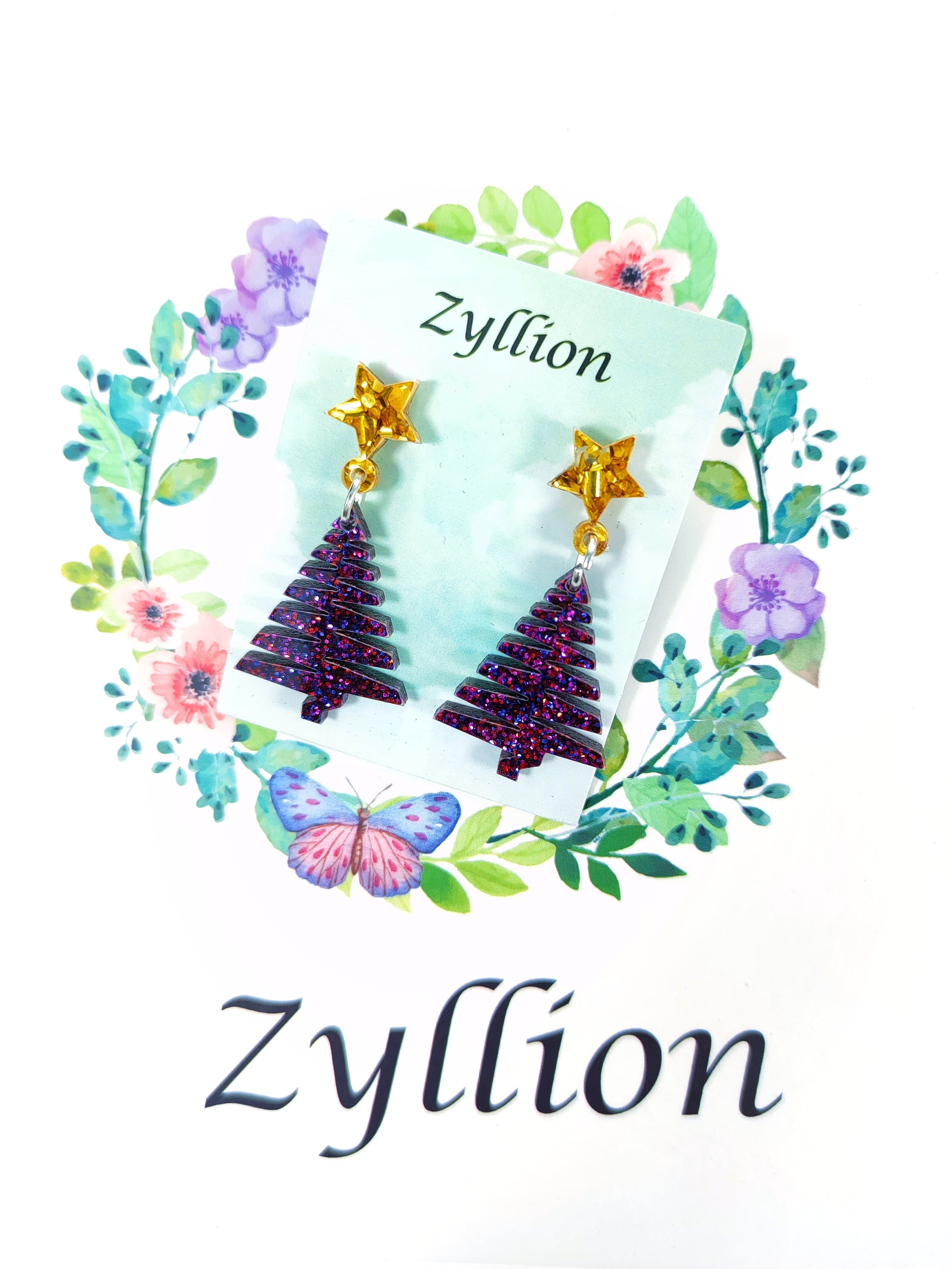 Mini twisted tree Acrylic Dangle Sterling Silver Earrings