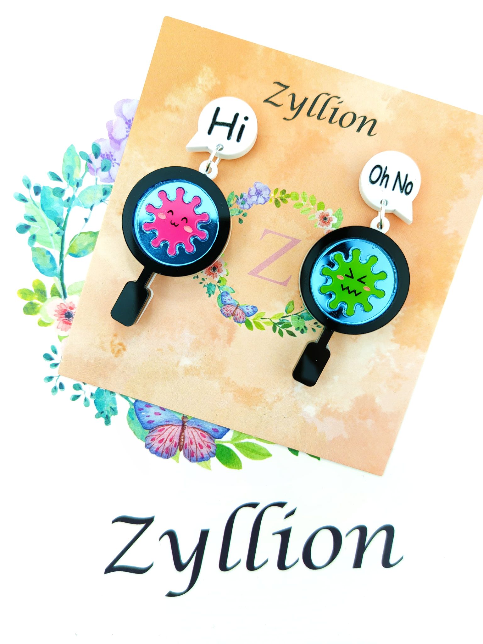Petri dish with magnifying glass Asymmetric Dangle Sterling Silver Earrings