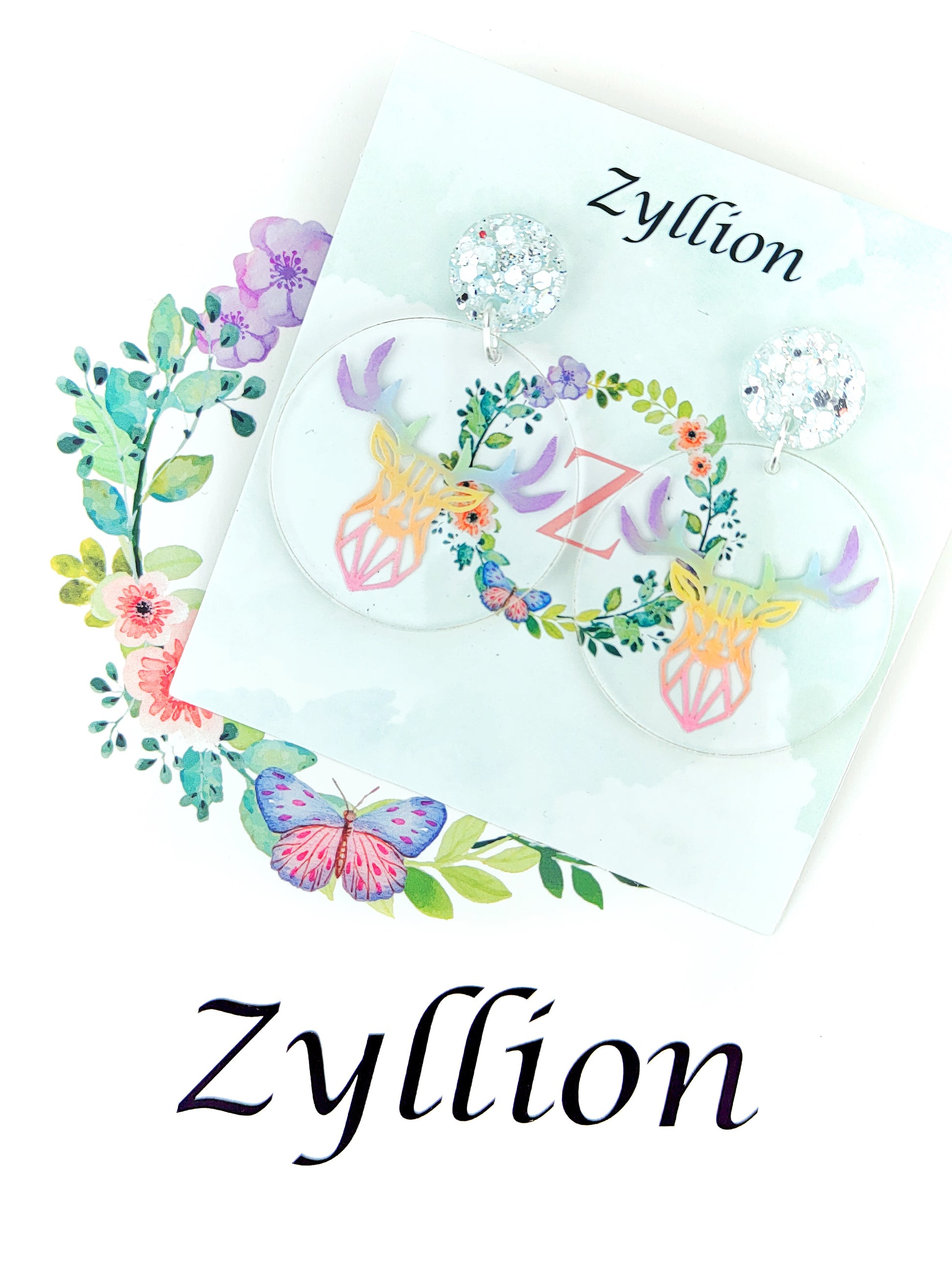Rainbow Reindeer Dangle Sterling Silver Earrings