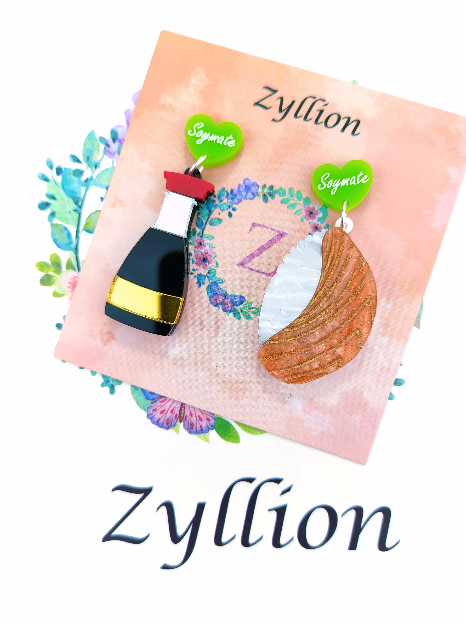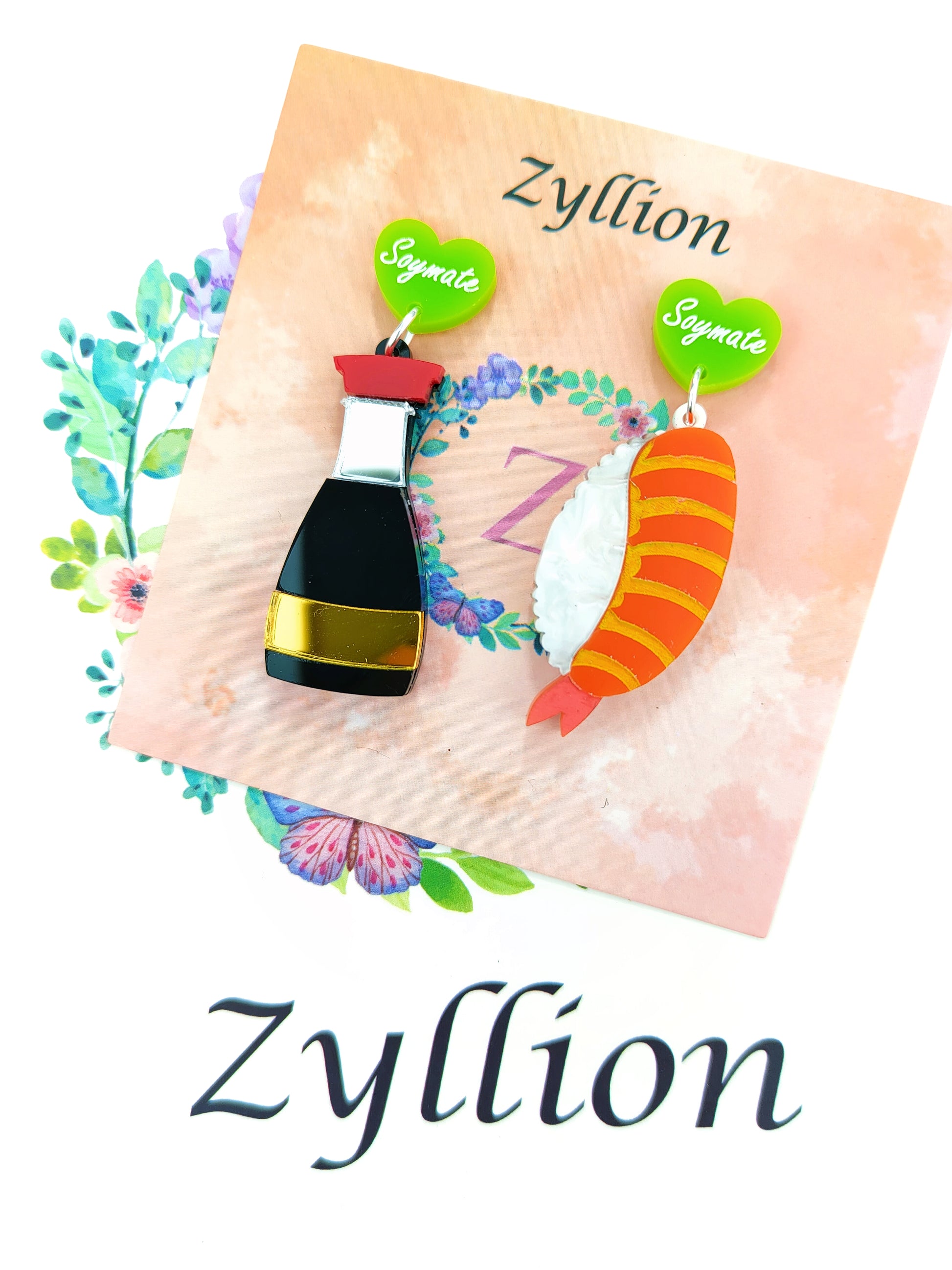 Soy sauce and sushi Dangle Sterling Silver Earrings