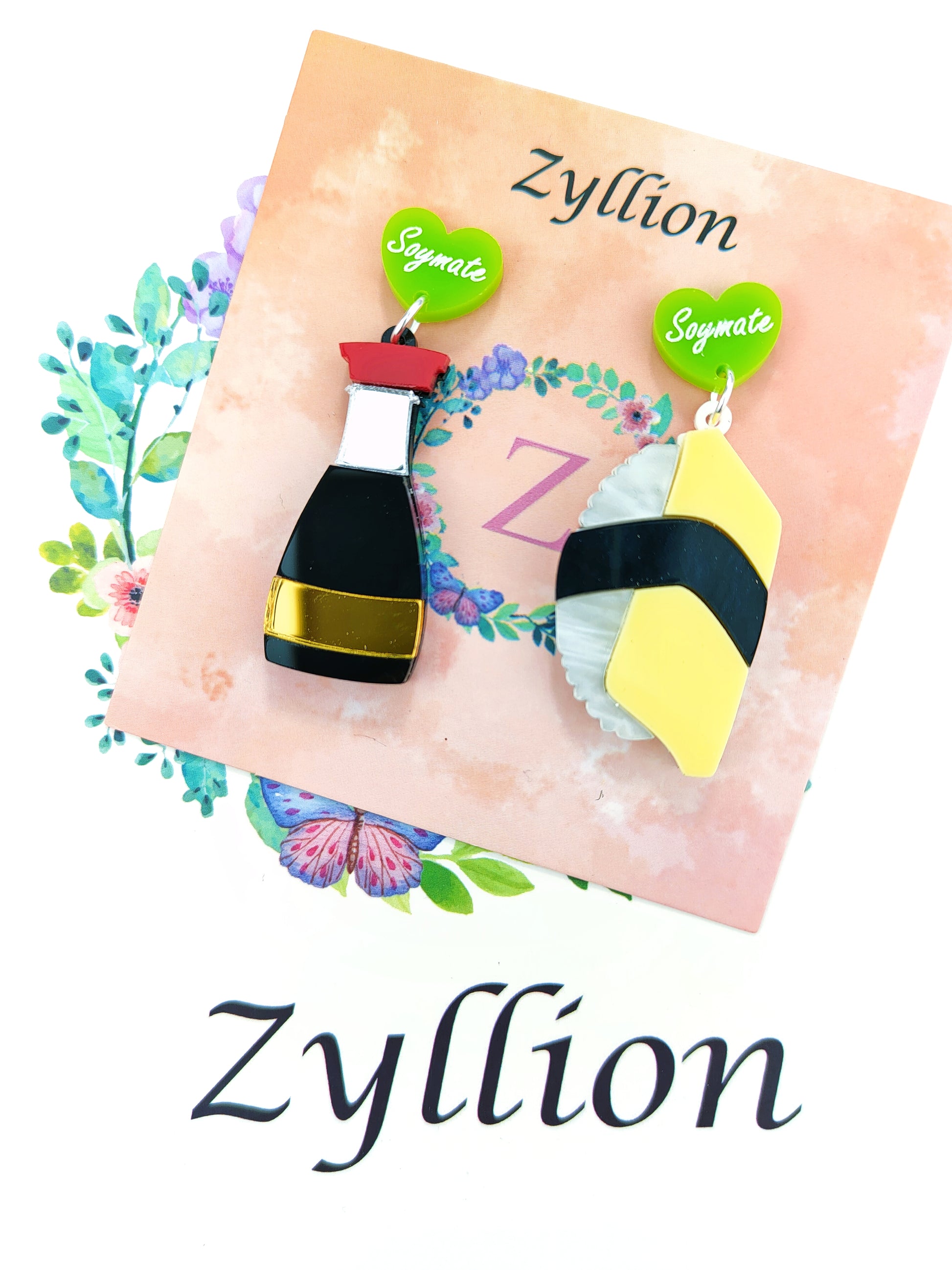 Soy sauce and sushi Dangle Sterling Silver Earrings