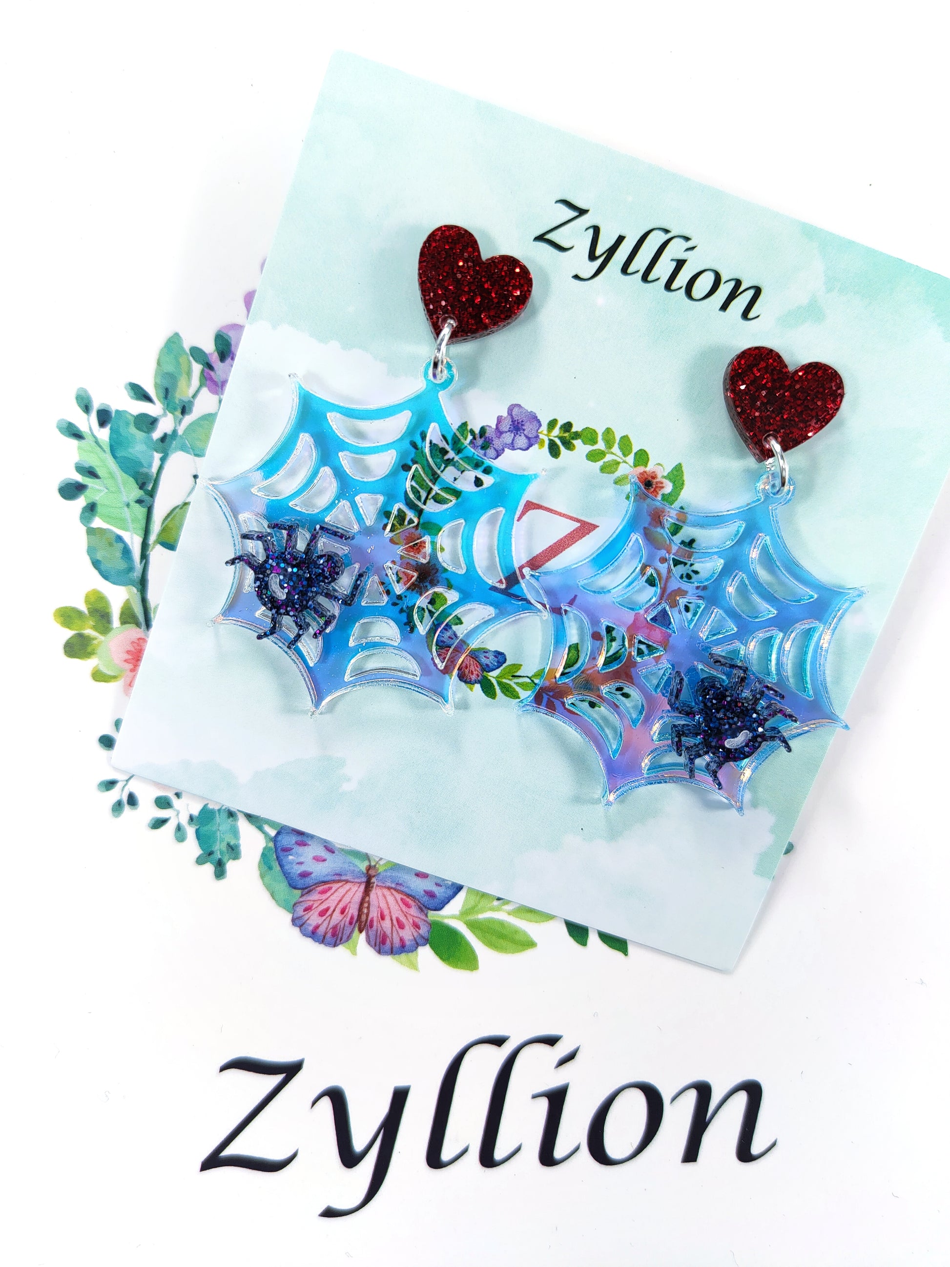 Spider web Halloween Acrylic Dangle Sterling Silver Earrings