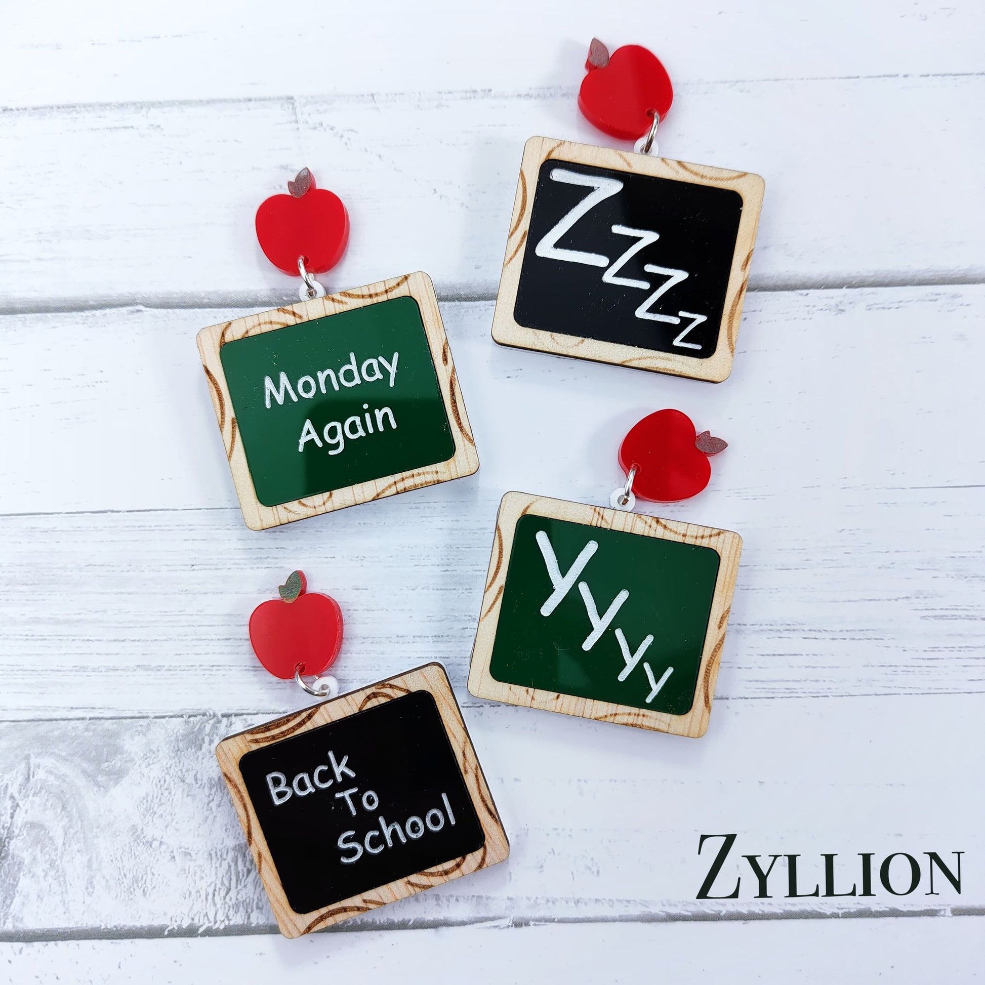 Teacher's Blackboard Acrylic Dangle Sterling Silver Earrings