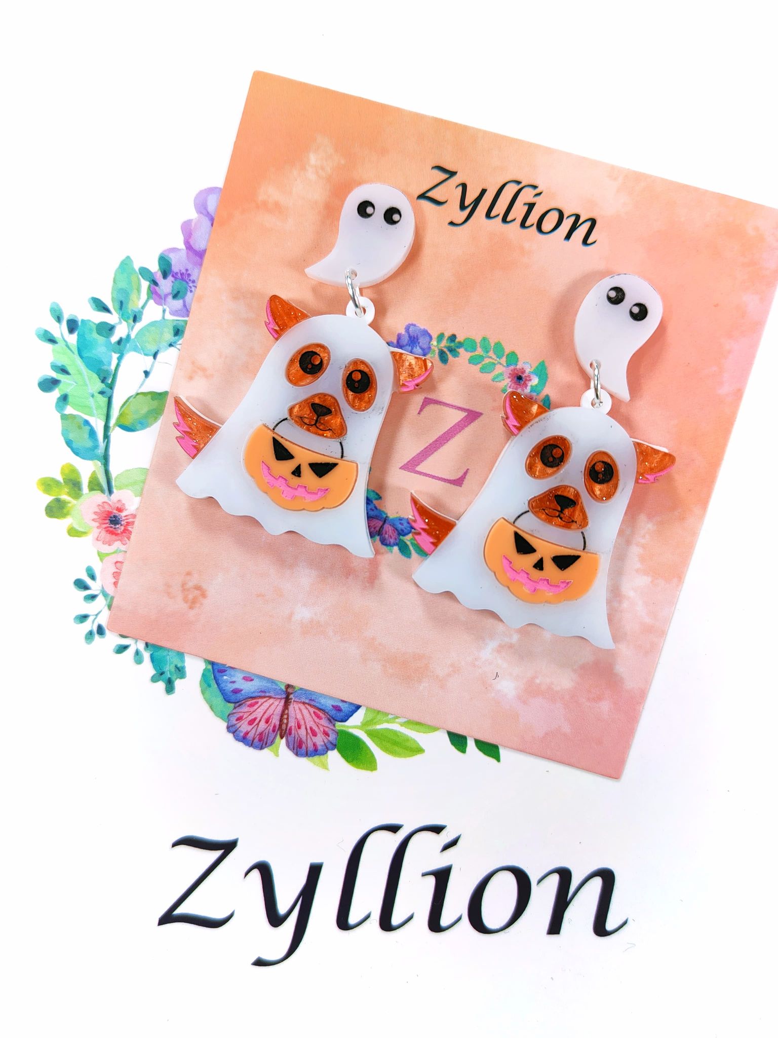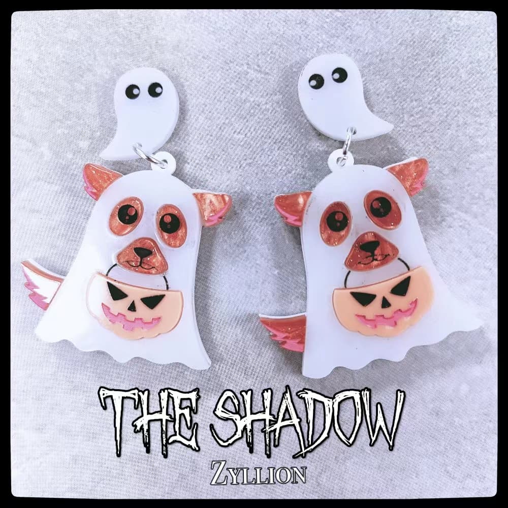 The naughty corgi ghost Halloween Acrylic Dangle Sterling Silver Earrings
