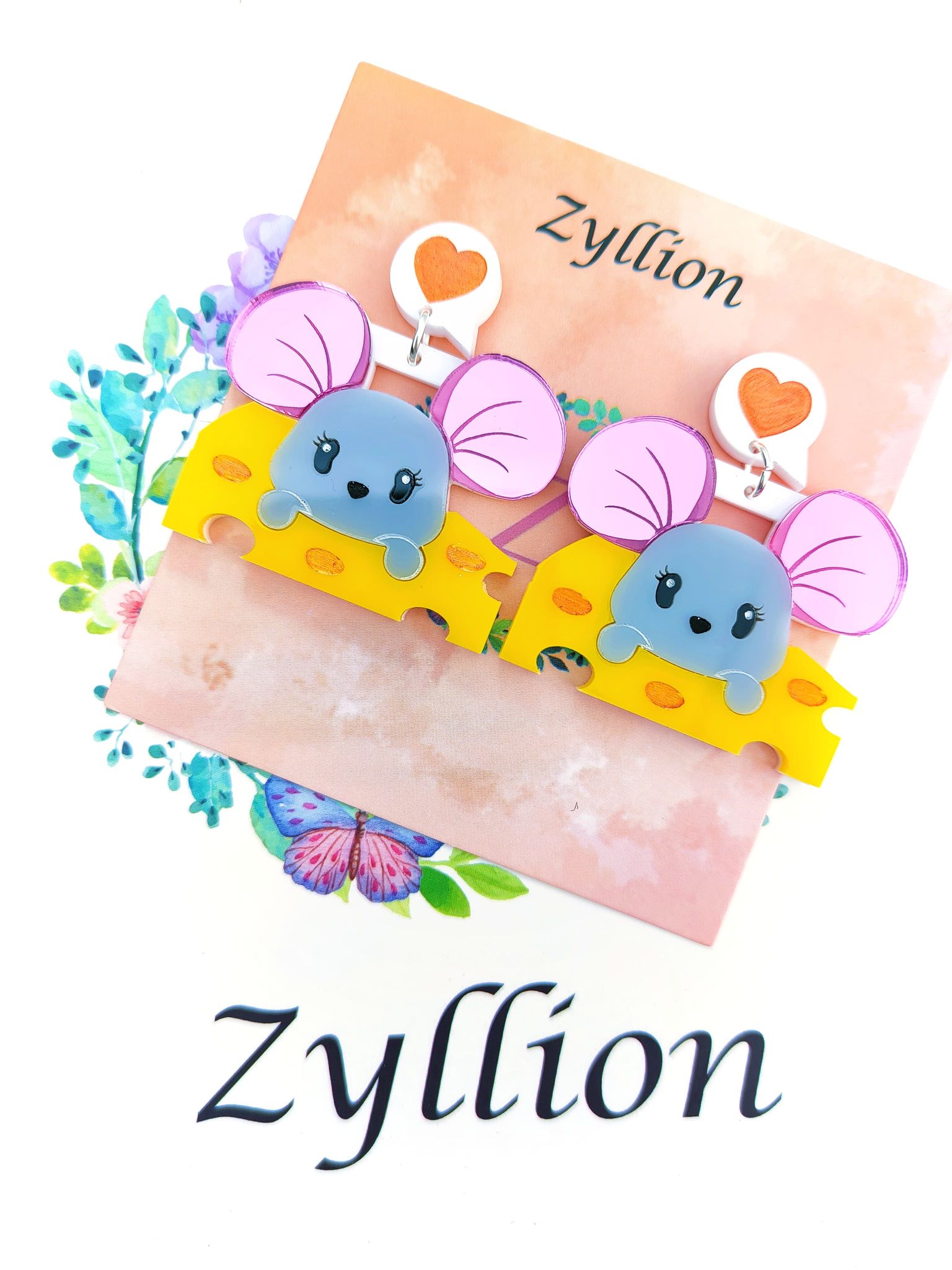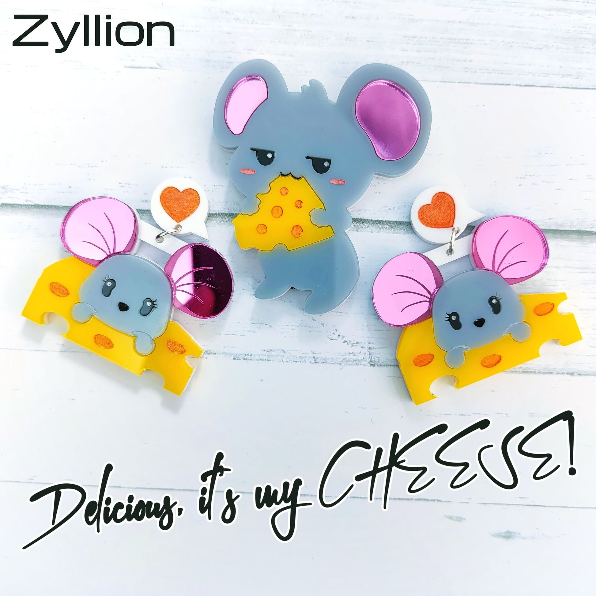 Who ate my cheese Acrylic Dangle Sterling Silver Earrings